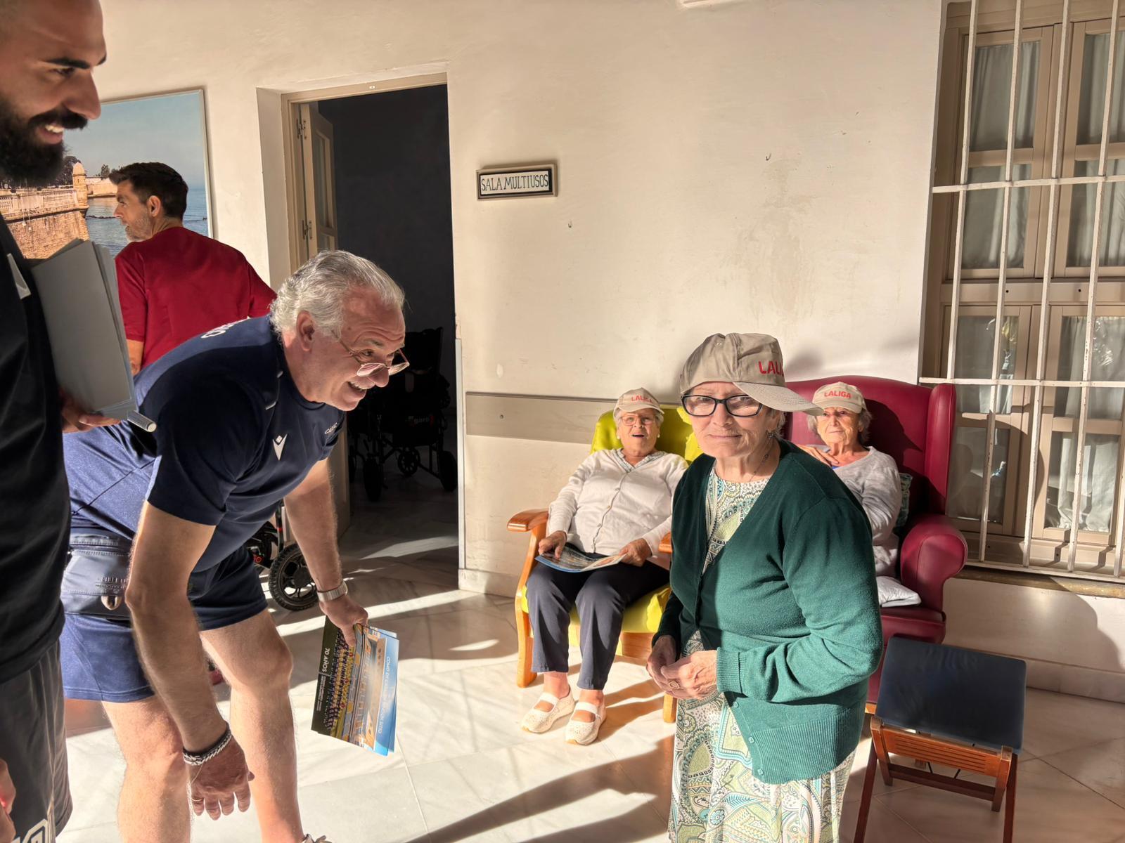 En esta ocasión, el primer equipo estuvo representado por Fali, quien acudió acompañado por dos auténticas leyendas cadistas: Pepe Mejías y Paco Baena. Los tres dedicaron la tarde a compartir momentos con los residentes, conversar sobre fútbol y la historia del club, y entregarles regalos y pósteres firmados que hicieron las delicias de todos los presentes.