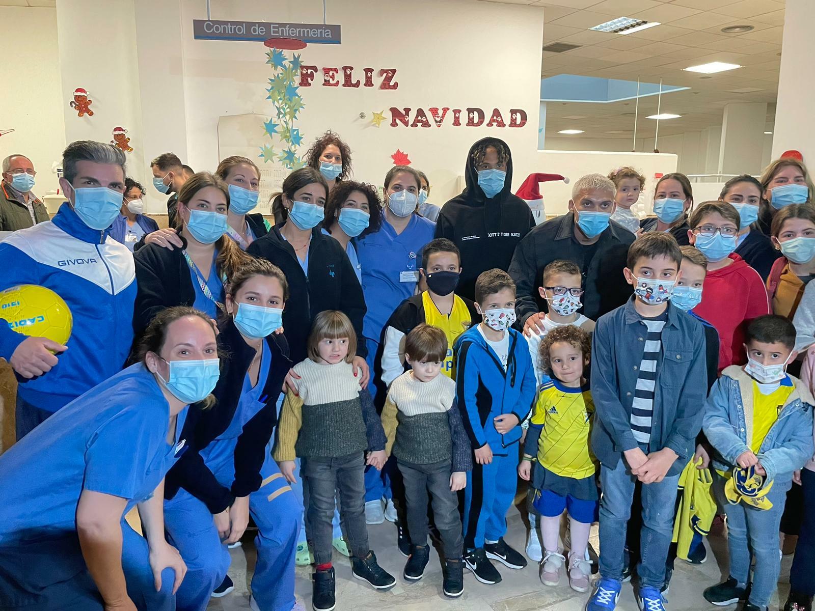 Una vez en los centros hospitalarios, los futbolistas aprovecharon la ocasión para hacer entrega de diferentes regalos cadistas y llenar de ilusión a los más pequeños.